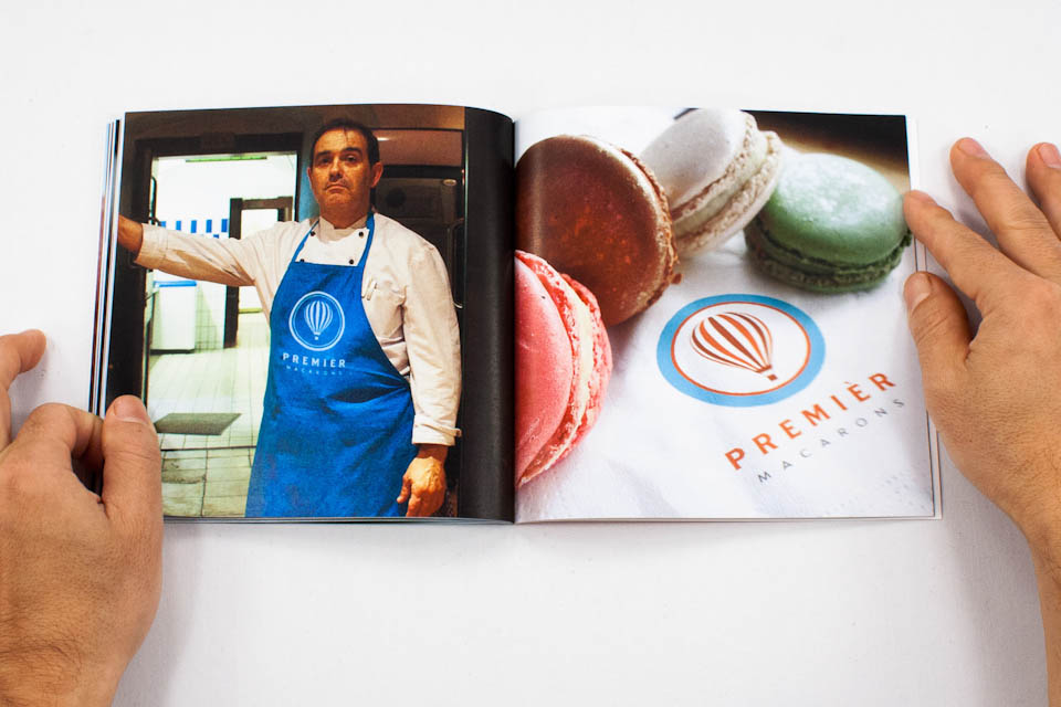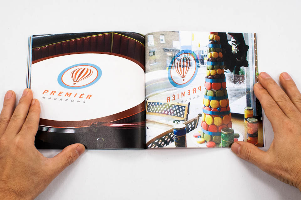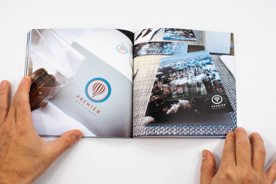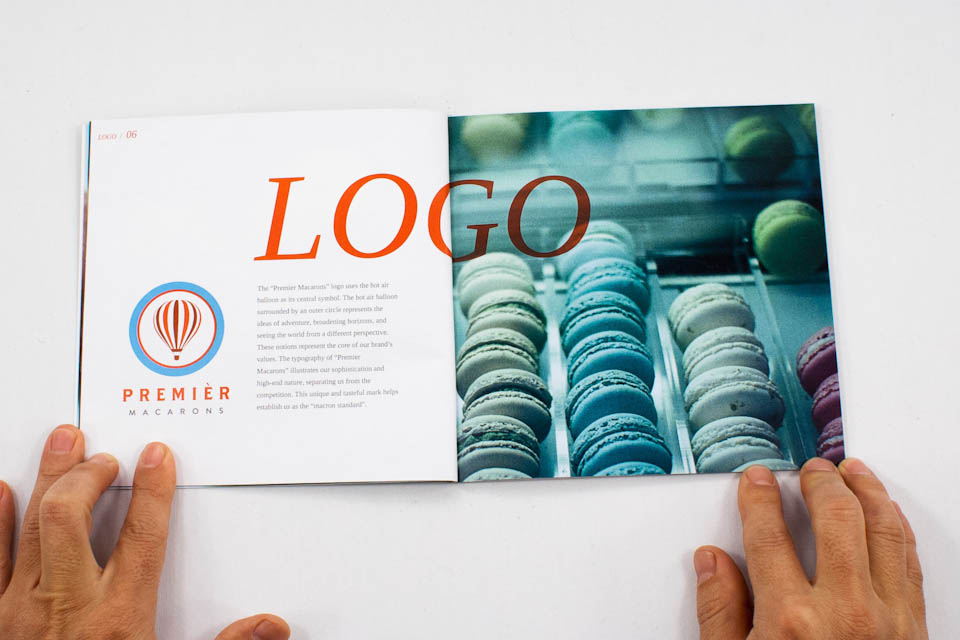 The Premier Macarons logo uses the hot air balloon as its central symbol. The hot air balloon surrounded by an outer circle represents the ideas of adventure, broadening horizons, and seeing the world from a different perspective. These notions represent the core of our brand's values. The typography of Premier Macarons illustrates our sophistication and high-end nature, seperating us from the competition. This unique and tasteful mark helps establish us as the "macron standard".